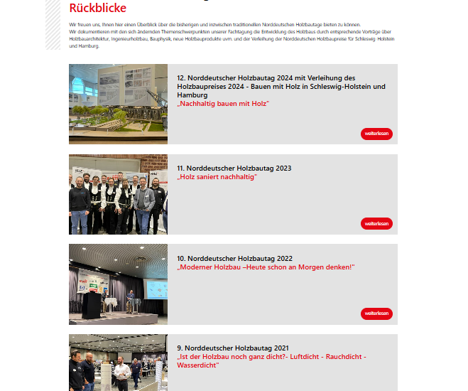 Seit 2013 steht das Bauen mit Holz im Mittelpunkt unseres Schleswig-Holsteinischen bzw. Norddeutschen Holzbautages. Der Norddeutsche Holzbautag ist DER Branchentreff...